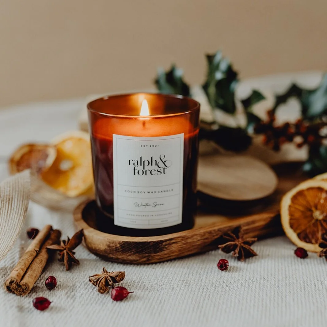 Each candle is infused with rich, enveloping scents - think spiced woods, warm amber, mulled fruits, and smoky firesides, evoking the charm of falling leaves, crackling hearths, and winter twilight.